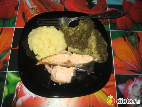 ланч: форель на пару, пюре картофельное, броколли...еще был чай с чабрецом (но тоже как-то в кадр не попал)
