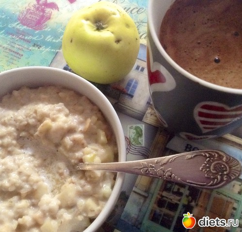 овсянка на молоке с изюмом, яблоко, кофе декаф б/с: