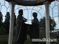 и набрели на беседку где установлены статуи Петра и Февроньи,