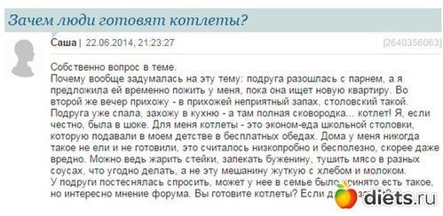 Девки вы все тут так жрете я фигею от вас!! Не худеющие люди едет так за неделю!!! Этож сколько еды надо готовить и главное сколько денег надо иметь на продукты! О себе: трое детей, сыновья, муж огромный. С едой приходиться планировать расходы, если ни в чем не отказывать никаких денег не хватит( 20 тыс один поход в магаз на неделю). Дальше приготовить это надо мне, желательно по здоровому питанию без жарки и жира, иначе будут сидеть на сухом корме( колбасы, печеньки, лапша и всякая гадость). Далее готовлю 4-5 раз в день, но пока всем положу еду глядишь, а мне то практически в кастрюльке ничего не остается!! Хотя это плюс, но хотела я бы есть как вы, для себя любимой, и была бы как все 80 кг!!! Мой вес 65, фигура строй няшка, аппетиту хоть отбавляй, но надо ж себя в руках то держать, мы ведь женщины!!!