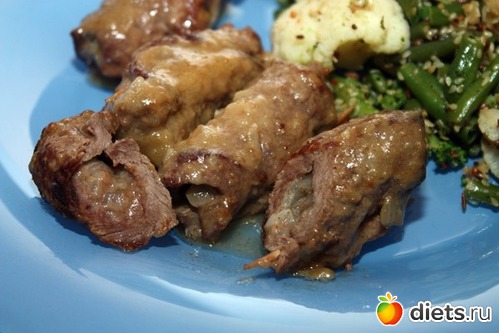 Я слопала щи с грибами, зразу из ломтика нежнейшей телятины с овощами, витаминный салат и все запила компотом.