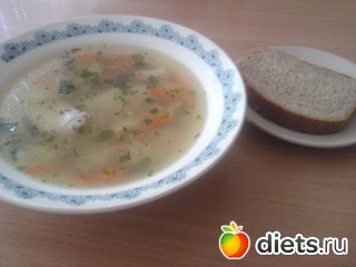 Обед: Куриный супчик и 1 кусочек хлеба ’’Русь’’