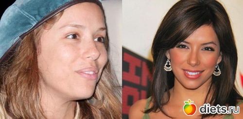 Кто бы мог подумать, что у Евы Лонгории есть очаровательные веснушки, которые, кстати, ей даже идут. Макияж скрывает все, порой даже достоинства.