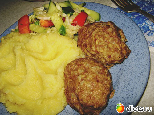Рыбные котлеты выложить на противень, смазать майонезом и томатом и печь в духовке до готовности (около 20 минут).