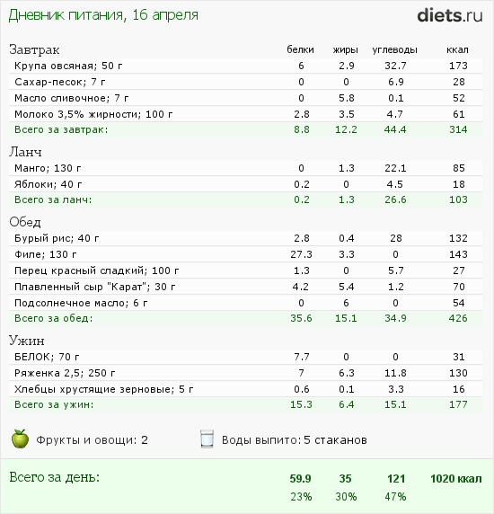 Калорийность продуктов