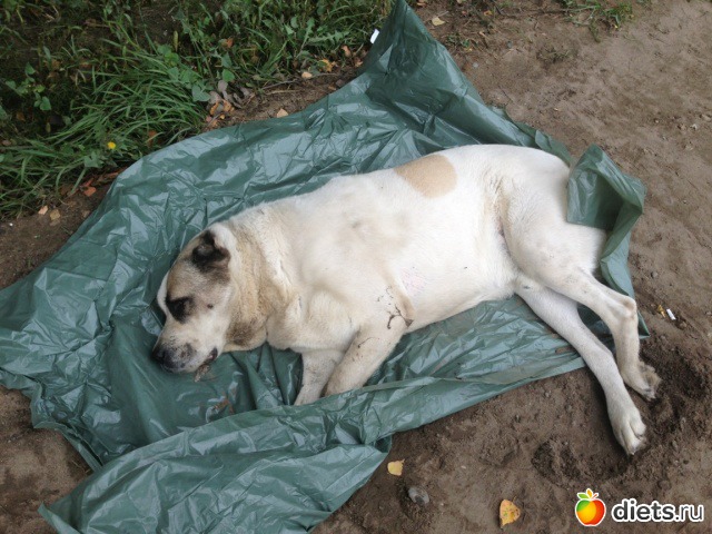 Бедняга был сбит машиной. Оставить умирать живую душу ей что-то не позволило, конечно на работу они опоздали. Спасать беднягу самим - но они не знали как и что делать, тем более кобель размером с хорошего теленка внушал опасения. Парень набрал в поисковой строке интернета "помочь алабаю" и получил сайт команды помощи алабаям "Алабай Хелп", позвонил девочкам они приехали и забрали пострадавшего...так для моего Ромы началась другая жизнь.