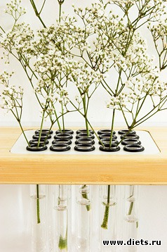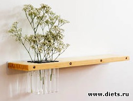 Полочка — ваза готовы служить и украшать комнату. И затраты на изготовление полочки сводятся к минимуму. Ну разве что вам придется купить пробирки в мед. технике.