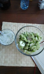 Готовила мама, ккал. не считала, но состав таков: огурцы, зелень, соль, кефир. Читать полностью