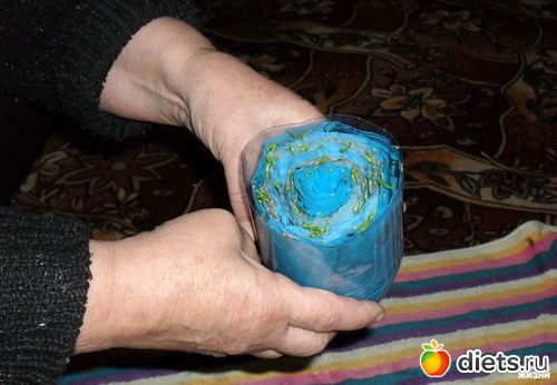 8. Затем вставляем рулончик в стакан семенами к верху. Вместо стакана можно использовать обрезаную бутылку из под газированной воды.