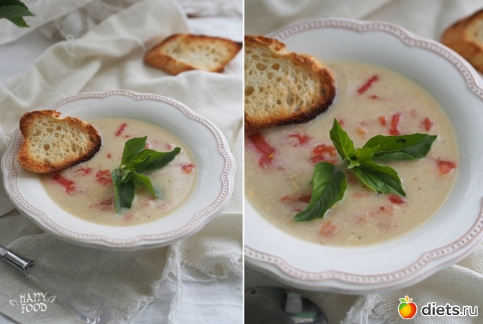 Очень вкусный супчик: сырный с томатами и базиликом — вкусно, нежно и так гармонично).