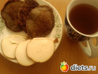 Завтрак: чай, печеночные оладушки, сыр плавленый