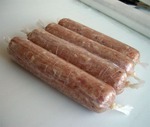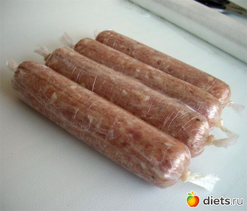 я делала похожий из фарша куриного. где-то есть у меня даже с фото. Куриный фарш смешала с луком и чесноком, добавила специй., завернула в пишевую пленку и в духовку
