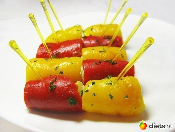 4. На каждую полоску перца выложить по 1 ч. ложке начинки.