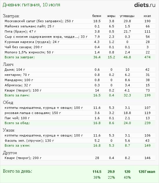 Калорийность продуктов