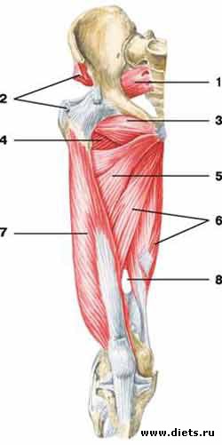 Цифра 7 - латеральная мышца бедра. Опять же она крепится к коленному суставу... Пью таблетки, втираю мазь. Осложняет еще все то, что я рулю иногда, а у меня механика и нагрузка как раз на левое колено возрастает((( Вчера сделала 20 мин кардио, много всего грудь-руки и пресса немного. Ноги не трогала. сегодня вроде полегче. Но трогать все равно не буду. Подожду еще.