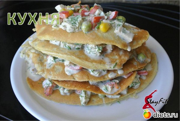 Diets.ru ТОРТ ИЗ ЯИЧНЫХ БЛИНОВ С КУРИНОЙ НАЧИНКОЙ