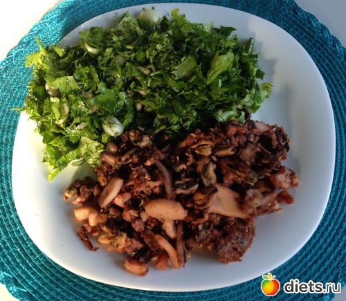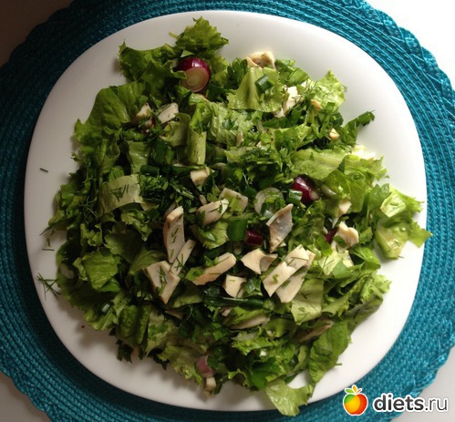 Вот что написано в этой диете! Видите слово "ЗЕЛЕНЬ"! Ну вот я её родимую и кушала:салат,петрушка,укроп,кинза,лучок!