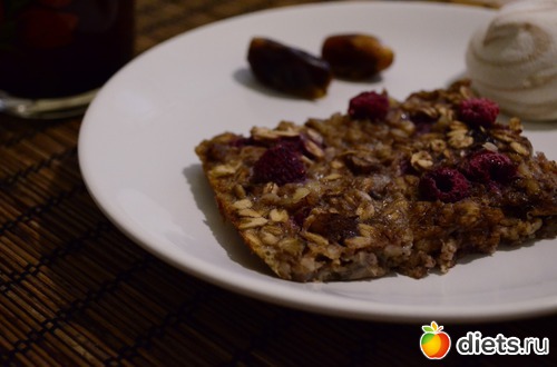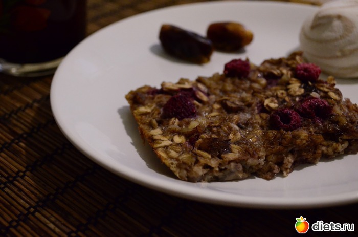в воскресенье опробовала новый рецепт - овсяный пирог с бананами и малиной.