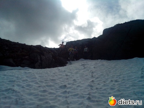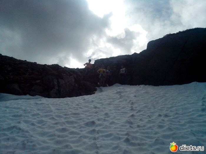 Взбирались на вершину часа 2, не меньше, и моей радости не было предела... Мы взбирались на хребты, нашли редкое растение, которого было там в изобилие, вся наша усталость окупилась только от одного вида: вокруг могучие сопки, разливаются необъятные реки, с другой стороны, извилистый перевал уходящий в неизвестность. И конечно же, при температуре +30 на солнце, в тени хребта расположился снег! Июль и игра в снежки, самое яркое впечатление.