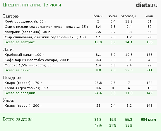 Калорийность продуктов