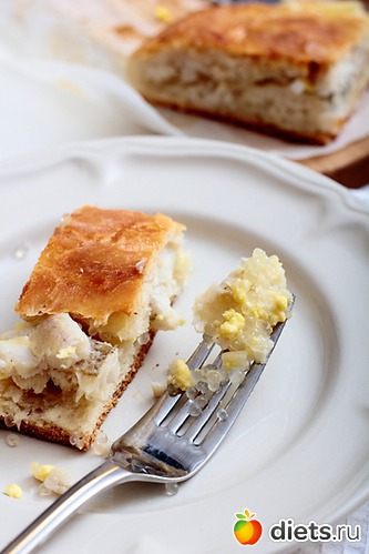 Сырая рыба дает пирогу сочность и вкус, а крупа впитывает рыбный сок, приобретая его вкус, и превращается в нежнейшую воздушную субстанцию, напоминающую деликатесную икру.