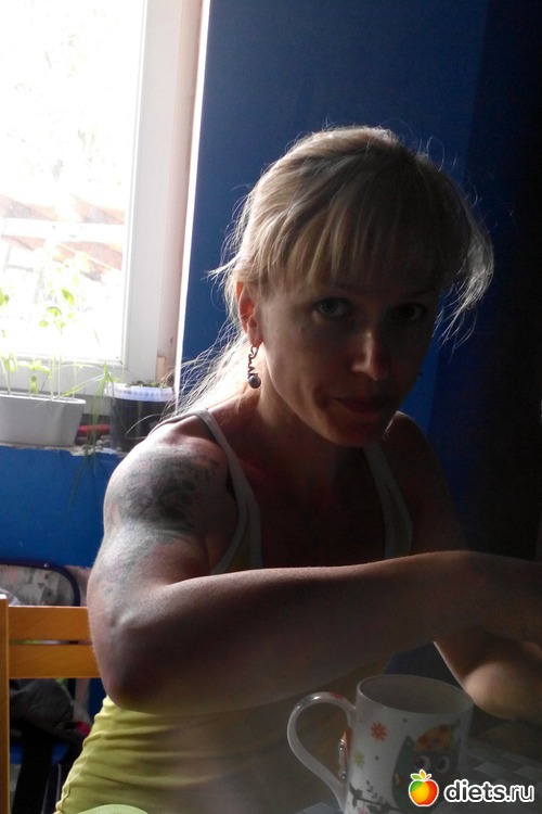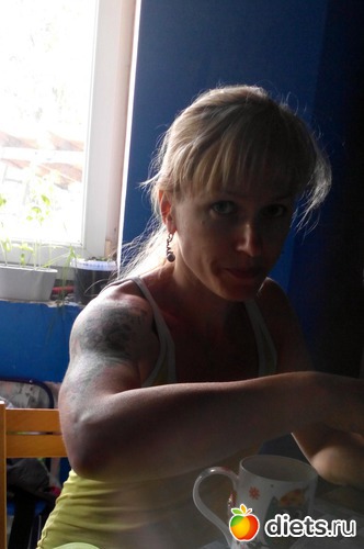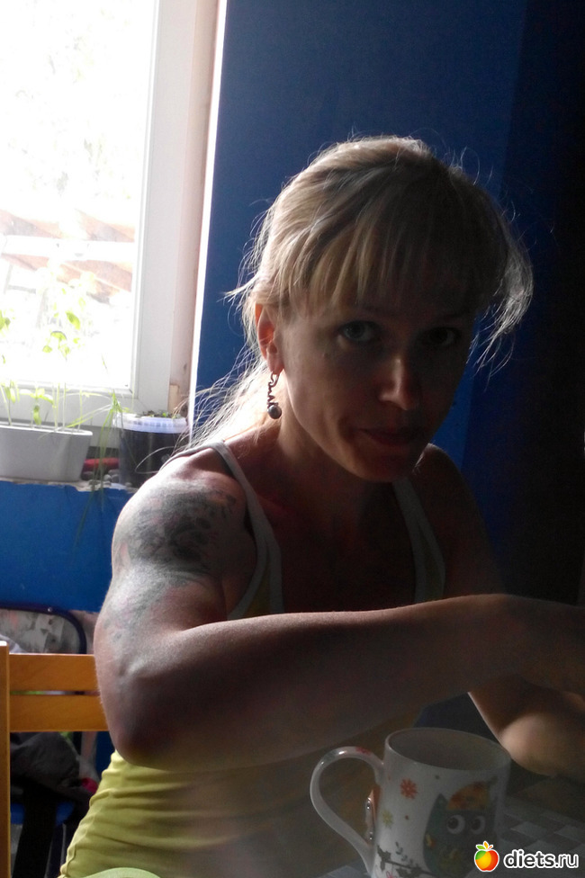 Тока у неё бицуха, как у моего мужа, и то он усиленно два месяца тут качается. Была меньше , только вот-вот догнал Юльку, монстр!