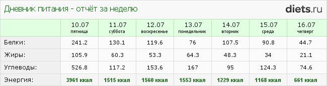 Вставляю отчет из дневника питания,