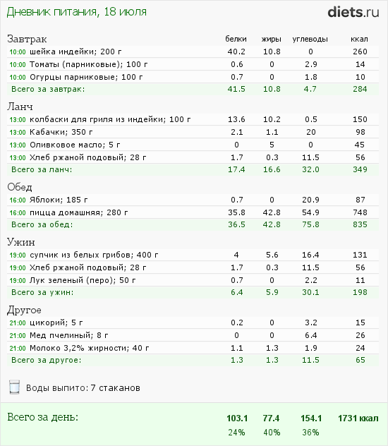 А теперь о главном, что я наела за сегодня, наела много, во всём виновата пицца и моя Иришка! Она приготовила и соблазнила, я напоролась, а потом посчитала калории и прифигела!