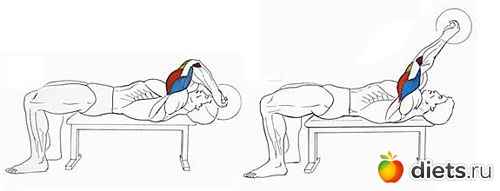 7. Французский жим лёжа. (здесь за месяц + 5кг.)