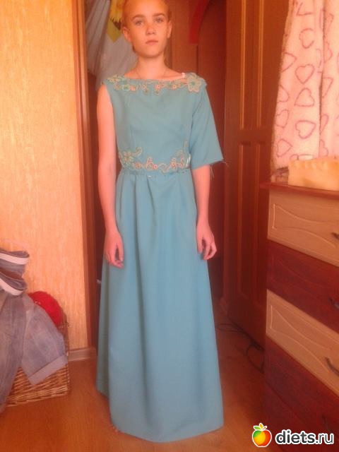 По поводу второго вопроса - мучает меня вопрос рукавов...надо или нафиг не надо. Малая после примерки одобрила длинный вариант, хотя я планировала отрезать чуть выше колен как она и хотела.