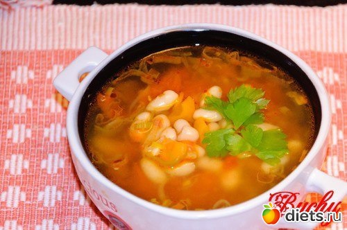 В суп добавить консервированные бобы вместе с соком, влить лимонный сок, посолить.