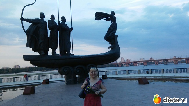 Мы очень много прошли, наконец-то я увидела памятник-ладью с Кием, Щеком, Хоривом и Лыбидью. Наговорились, общались очень позитивно. Лена в жизни еще красивее, чем на фото.