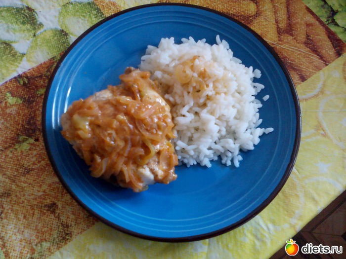 Обед - курица, запеченная в фольге + на гарнир отварной рис. Всего: 220 г.