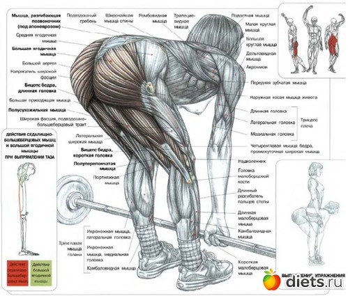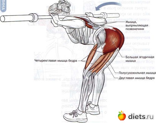 Good morning (наклоны со штангой) - это просто вариант гиперэкстензии. Там смотря как стоять и как наклоняться - можно неплохо нагрузить спину, а можно акцент сместить на бицепс бедра и ягодицы.