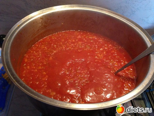 Я сегодня готовила сразу тройную порцию всего этого и выход получился 9 с лишнем литров! Я ещё добавила сегодня жгучий стручковый перец, а красногомолотого положила меньше.