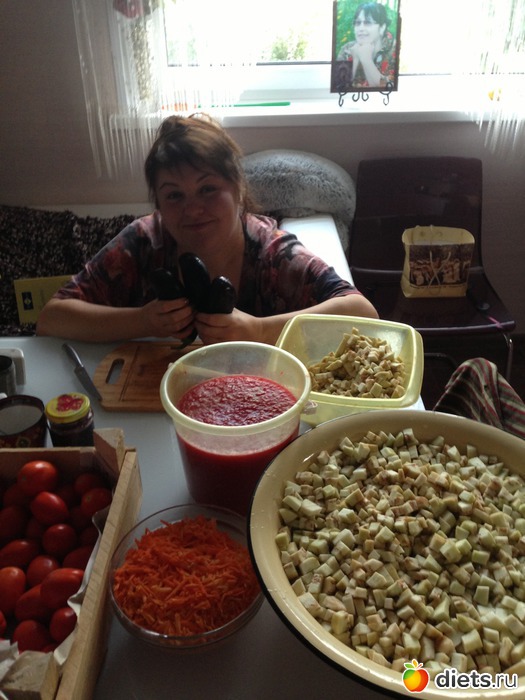 Жарить поочерёдно до выпаривания сока : лук, перец, морковь, помидоры, том.паста, баклажаны, по готовности посолить, ну и закатываем в стерелизованные банки, переварачиваем, под плед и до остывания и убираем! Скажу сразу из всех закаток, что я делаю, это икра самая долгая по затрате времени получается, я делаю сразу двойную порцию и часов пять у меня это занимает! Но результат обалденный по вкусовым качествам! Я обожаю эту икру!