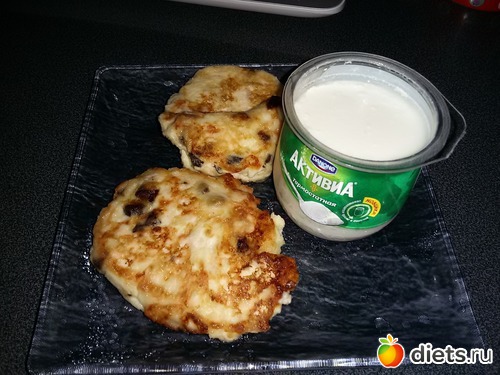ну вот...сырники с йогуртом. Плюс черный кофе.