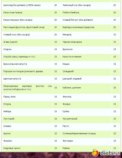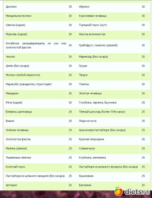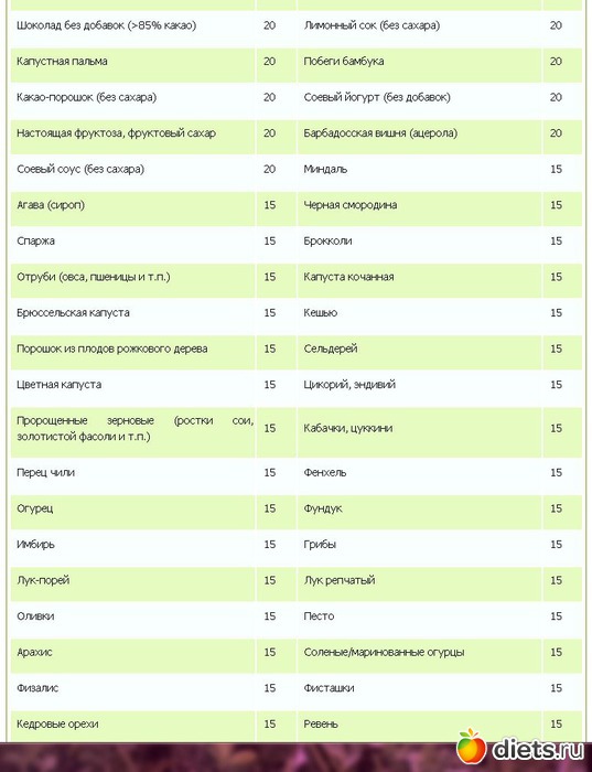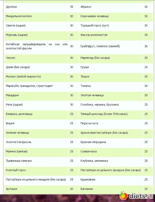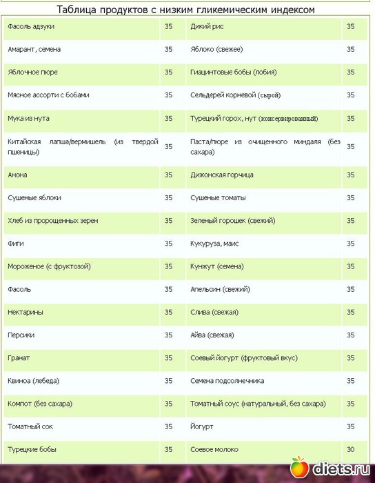 Гликемический индекс продуктов таблица 2ч (Таблица продуктов с низким гликемическим индексом)
