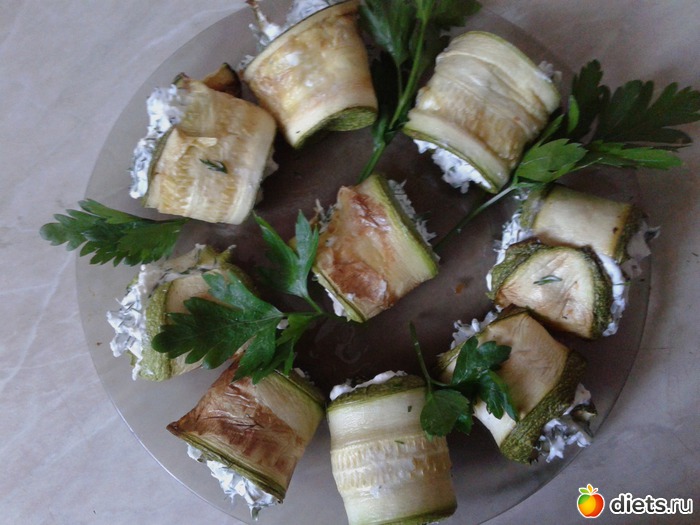 Diets.ru Рулетики из кабачков с творогом и зеленью.
