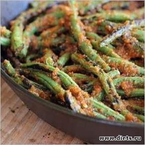 Нагрейте сковороду. Обжарьте фасоль небольшими порциями, помешивая, до готовности. Выложите в блюдо и заправьте соусом.