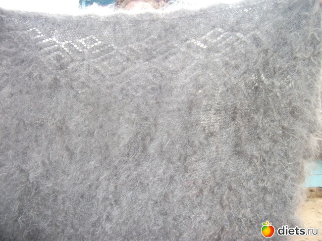 Этот платок связан из натурального козьего пуха, теплый, пушистый, мягкий.