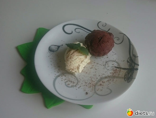) шоколадный фондан (такие кексики с жидкой начинкой). Так вот, на обед был он самый и шарик мороженого.