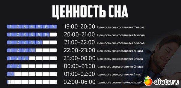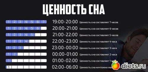 Есть интересная теория о ценности сна по часам. Согласно этой теории, для того, чтобы ощутить себя отдохнувшим, необязательно спать много, достаточно просто ложиться спать в определенные часы.