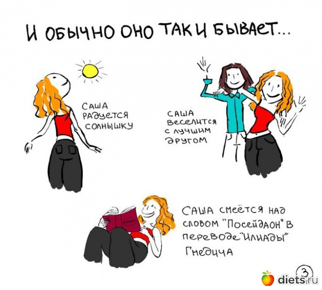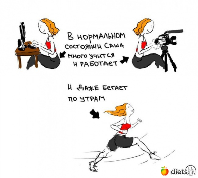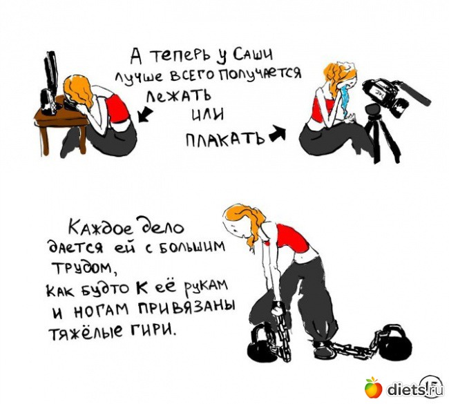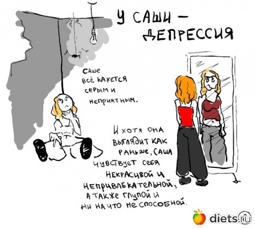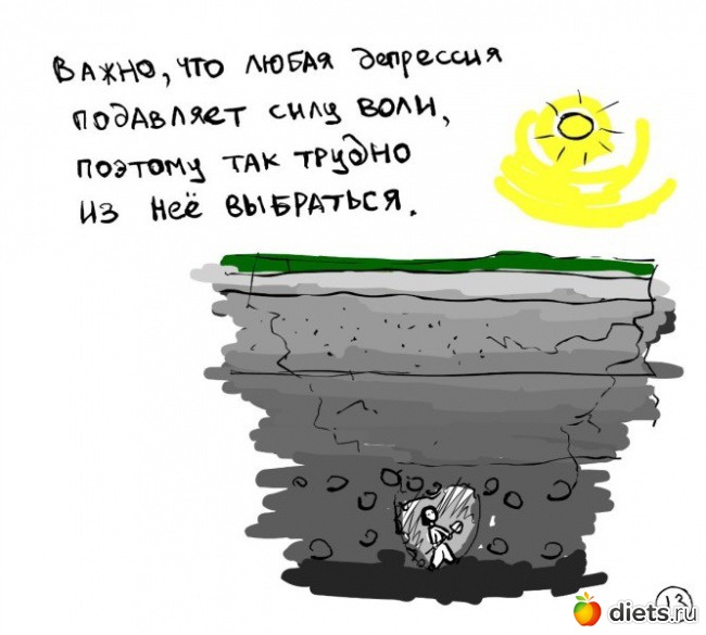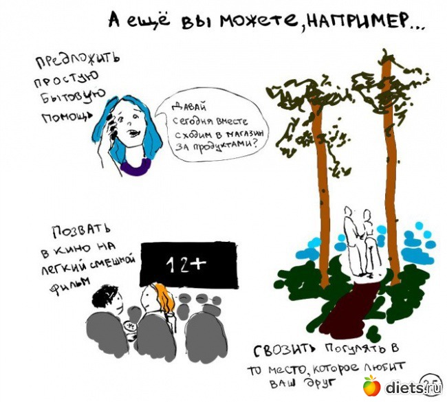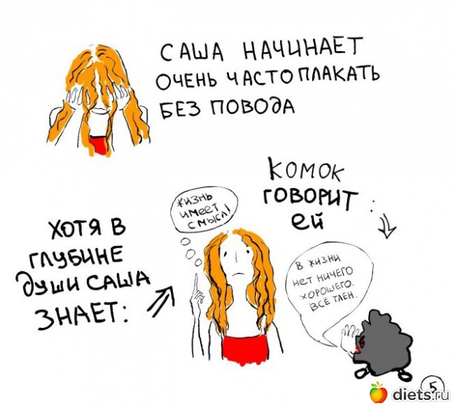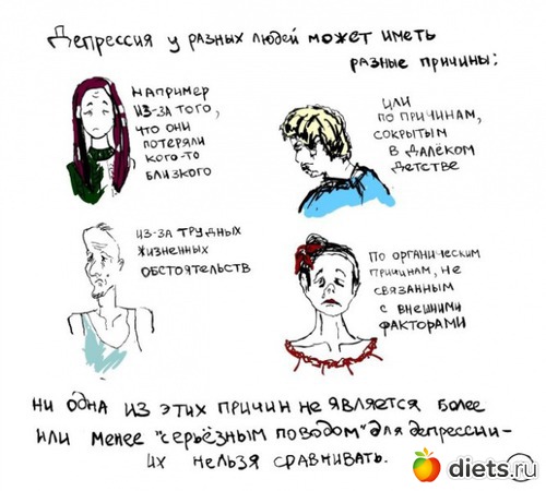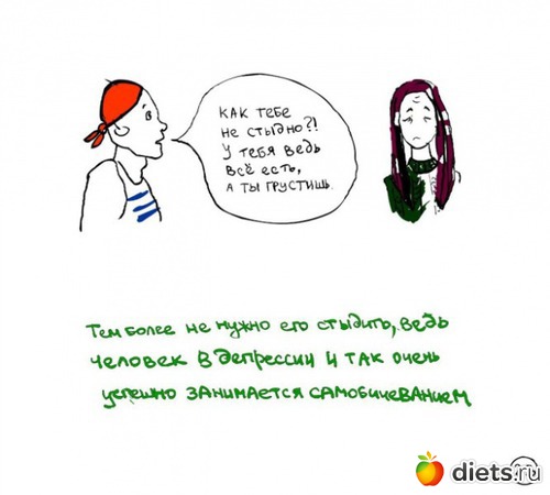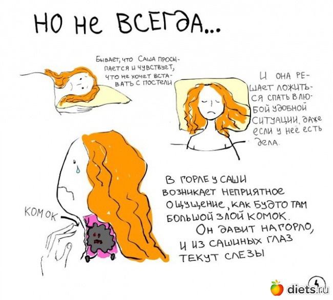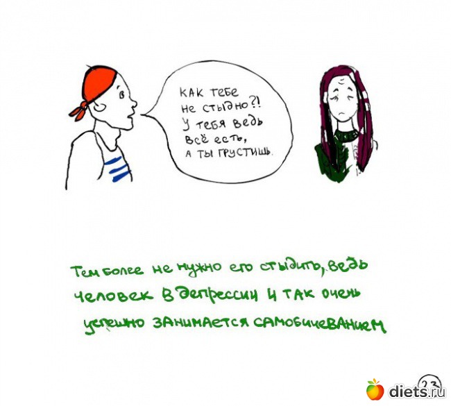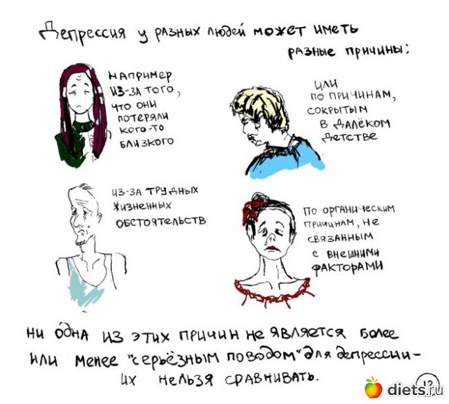 Вот несколько страничек из самой милой «Книги о депрессии» от Саши Скочиленко, которая мне ужасно нравится: