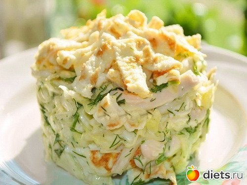 Салат с капустой и яичными блинчиками Салат с капустой и яичными блинчиками