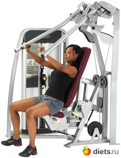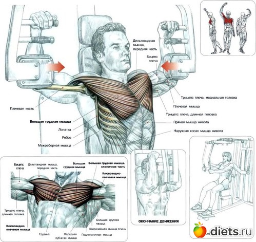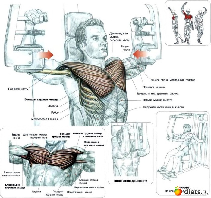 Упражнение в тренажере на грудные мышцы. и немного на дельты, кажется.