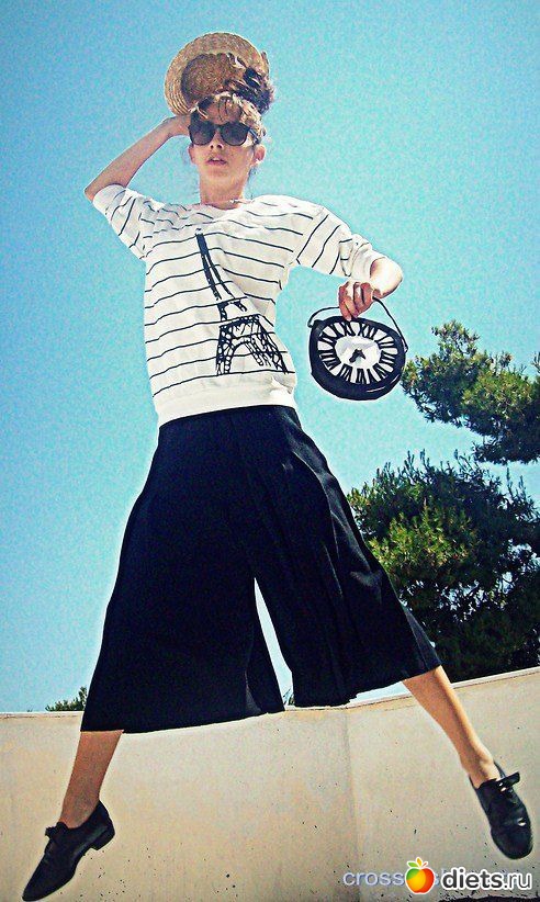 А как насчёт морского образа? Синие, белые или чёрные кюлоты с тельняшкой или любым топом в соответствующем стиле станут незаменимым комплектом как для прогулки по курорту, так и для выходного дня в родном городе.