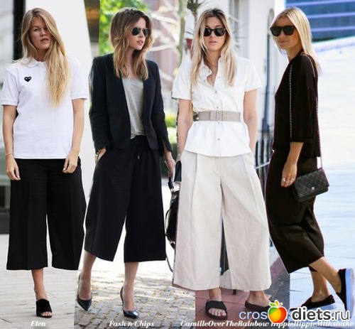 Итак, брюки-кюлоты вовсе не так страшны, если подойти к ним с умом. Поэтому, прежде чем отмахнуться от них с уверенностью, что ваш возраст, рост, вес или внешность совсем не подходят для этой модели, подумайте ещё раз! Может быть, вы просто плохо искали? Может, примерили очевидно не подходящую вам вариацию и по ней сделали вывод о модели в целом? Не спешите с выводами, и вы убедитесь, что любую идею можно адаптировать к вашей реальности, было бы желание!