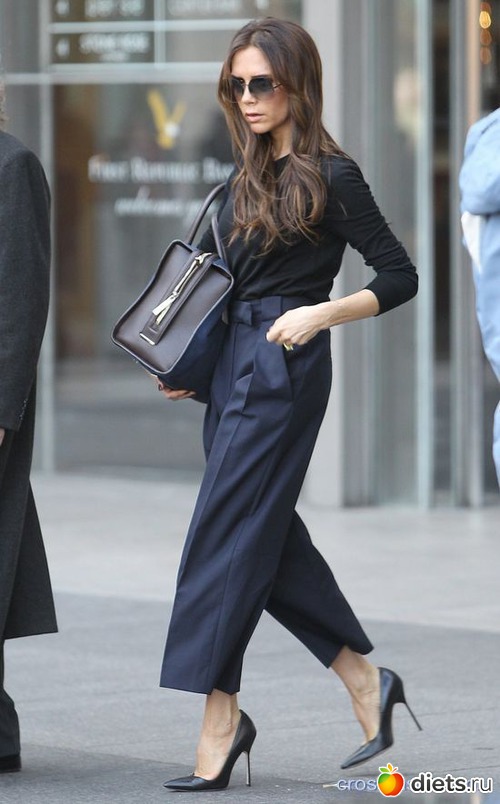 Если длина этих брюк будет выбрана неправильно, по самой широкой части ноги, например икре- то все, вы сразу окажетесь толще, чем есть на самом деле. И наоборот, если длина будет проходить на уровне тонкой щиколотки, то вы окажетесь более утонченной.