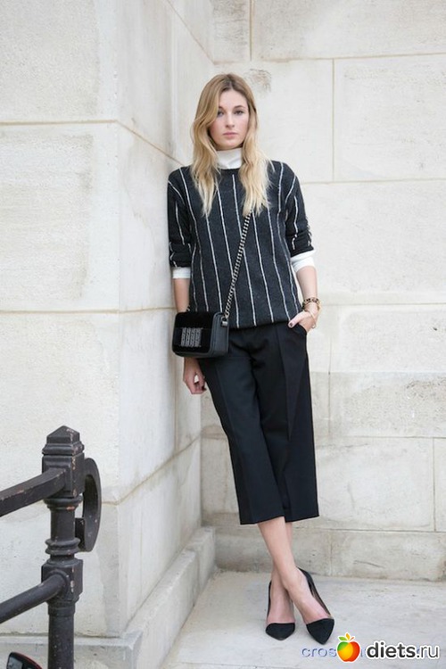Итак, брюки-кюлоты вовсе не так страшны, если подойти к ним с умом. Поэтому, прежде чем отмахнуться от них с уверенностью, что ваш возраст, рост, вес или внешность совсем не подходят для этой модели, подумайте ещё раз! Может быть, вы просто плохо искали? Может, примерили очевидно не подходящую вам вариацию и по ней сделали вывод о модели в целом? Не спешите с выводами, и вы убедитесь, что любую идею можно адаптировать к вашей реальности, было бы желание!